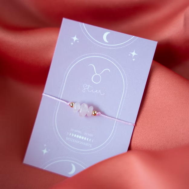 Deze armband is gemaakt van: Rozenkwarts