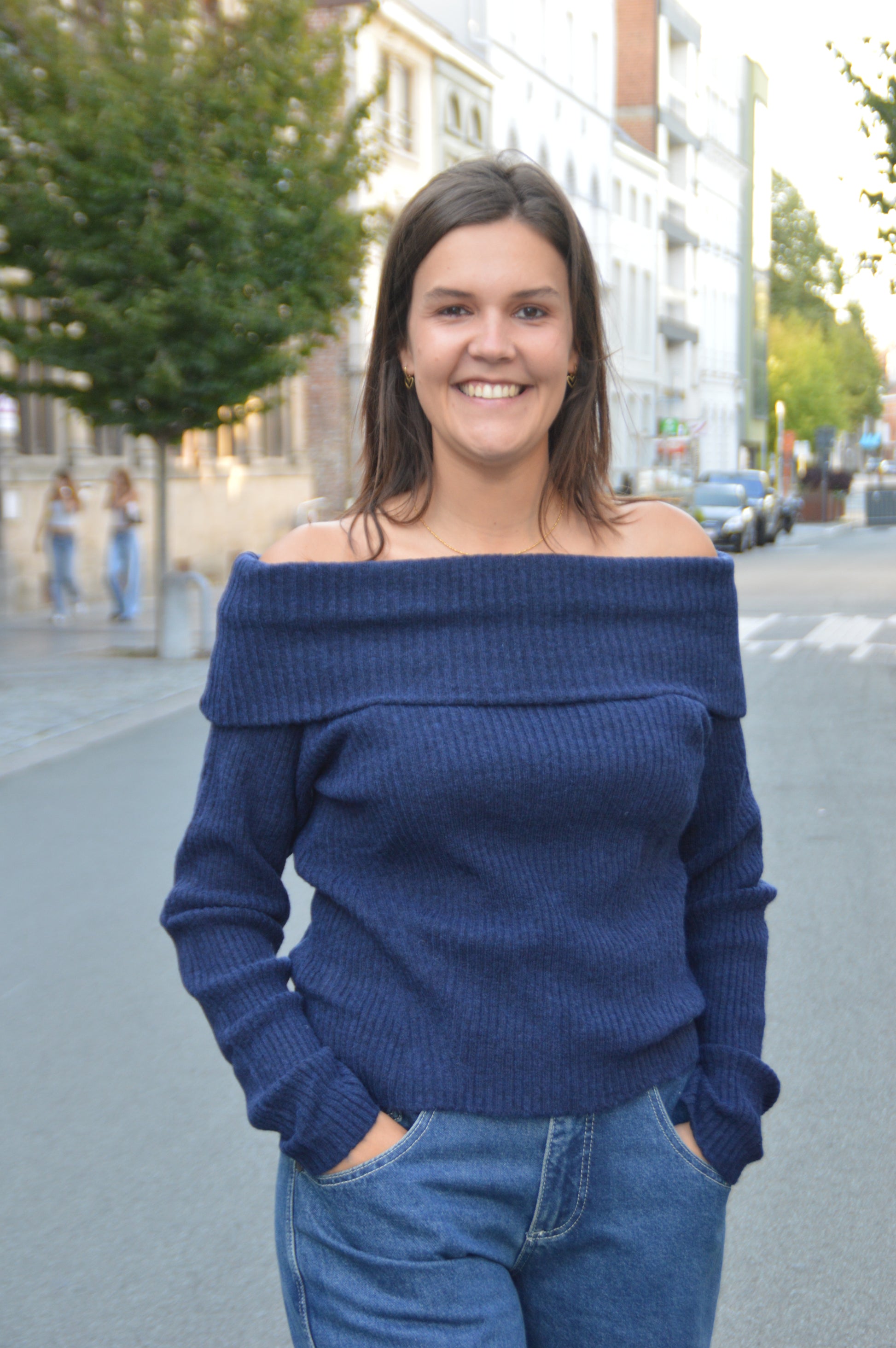 Fleur is 181 cm groot en draagt normaal Large, hier draagt ze Large.