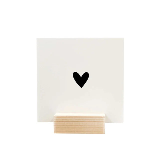 Je ontvangt één houdertje, gemaakt van duurzaam hout, met daarin een stevig Forex bordje van 9 x 9 cm.