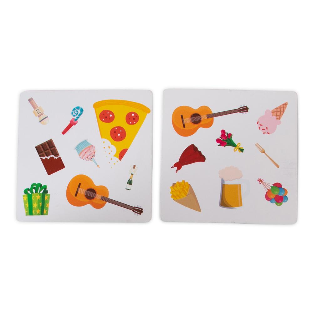 Leuk gezelschapsspel om met je vrienden of familie te spelen. Wie vind als eerst hetzelfde symbool op zijn kaart? (Zoals het spel "Dobble", maar dan met figuurtjes in thema Party)