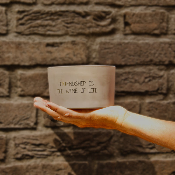 Een heerlijke geurkaars gemaakt van biologische sojawas. Deze kaars heeft de geur Fig's Delight en brandt ca. 50 uur. Afmetingen: 135 x 90 mm.