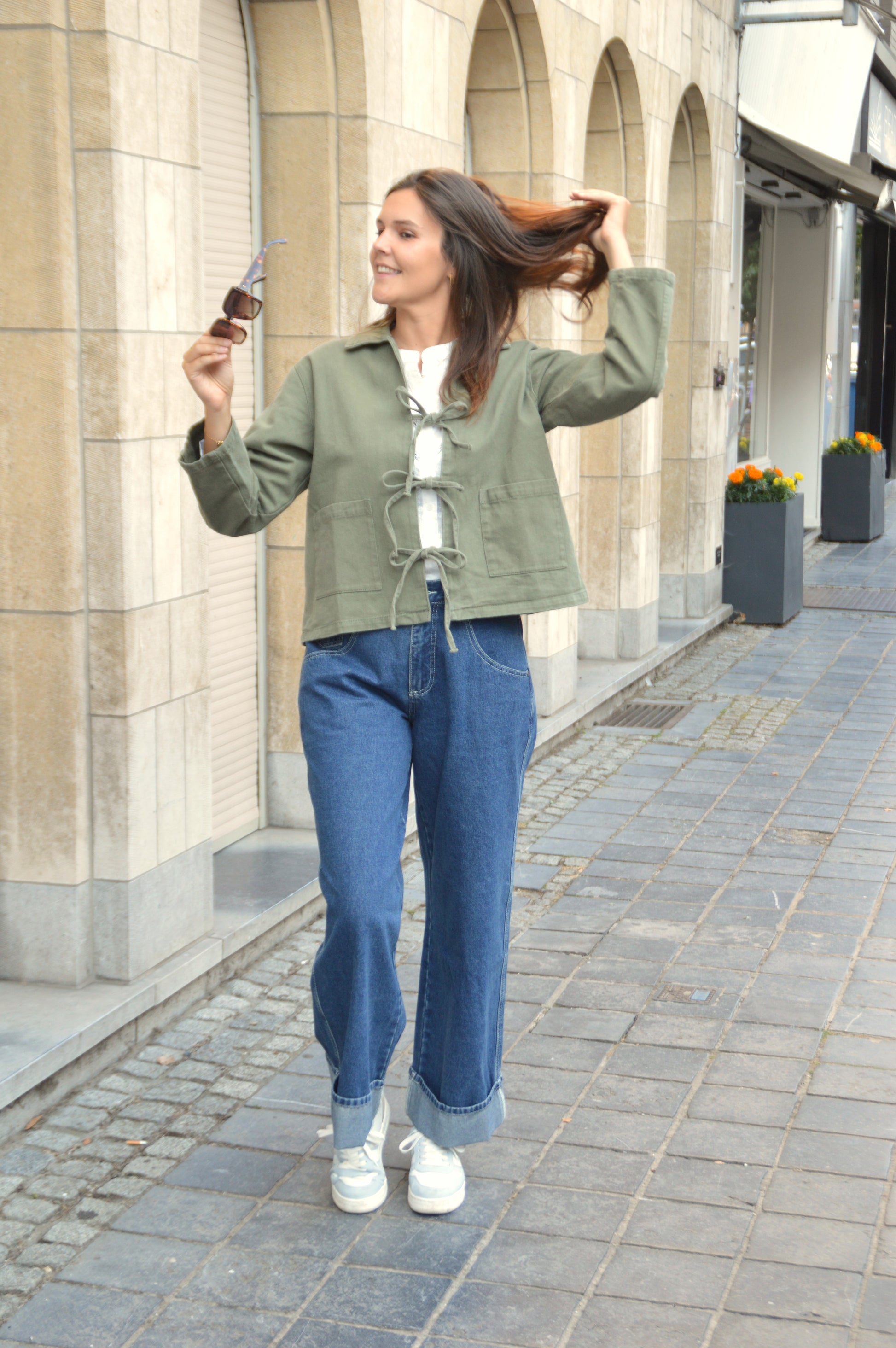 Fleur is 181 cm, draagt normaal Large, draagt hier Large.