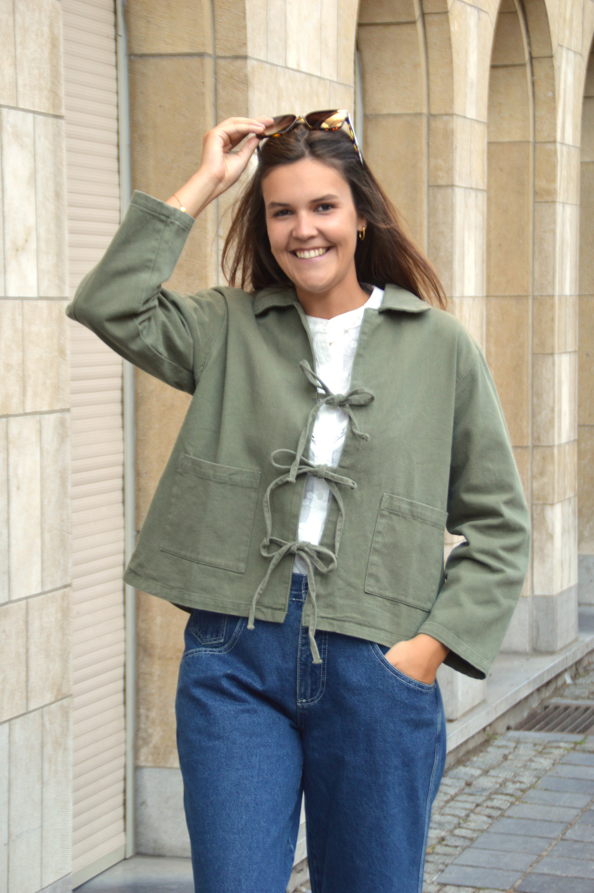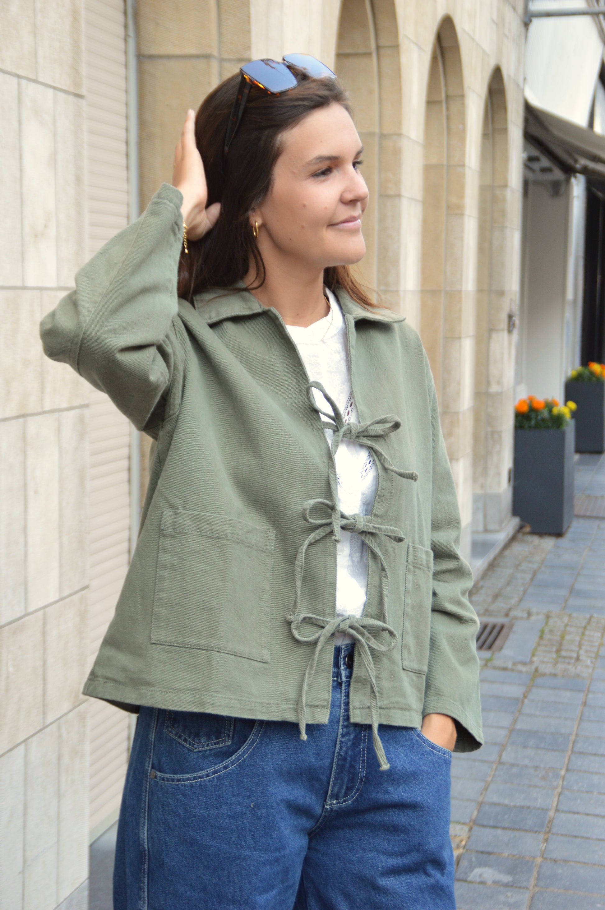 Kaki vest met strikjes