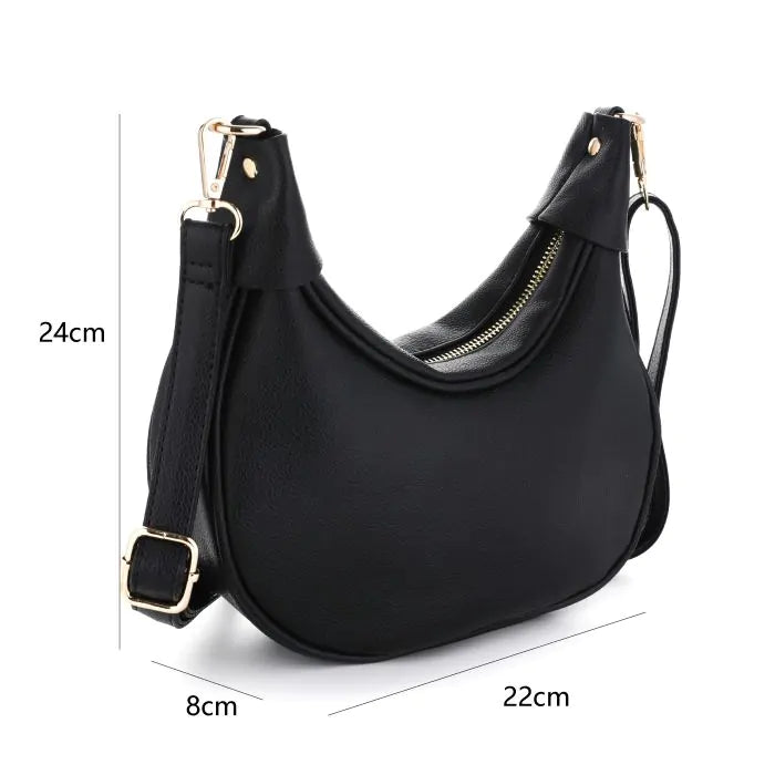 Tasje in de vorm van een halve maan. Het tasje heeft een lange en korte riem, je kan dus zelf kiezen hoe je het draagt :)