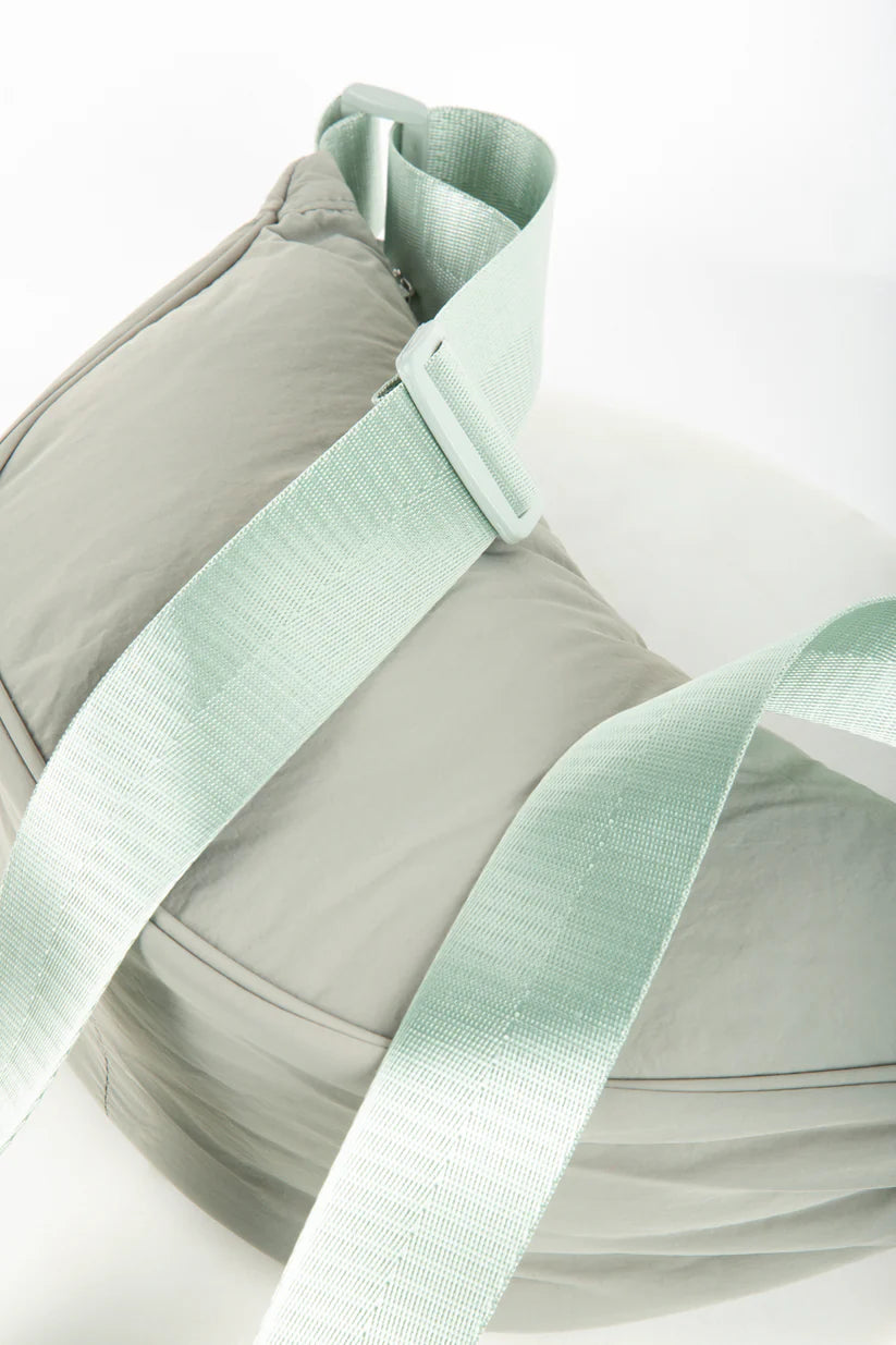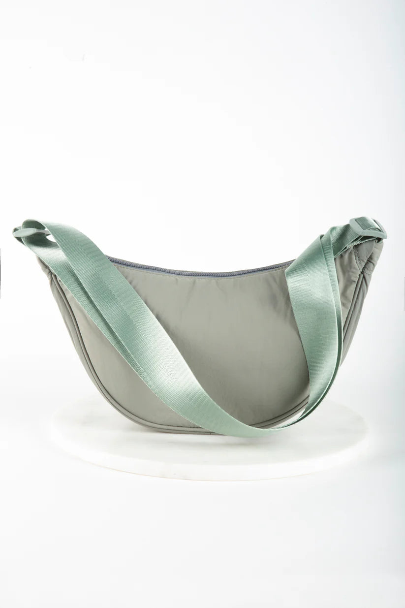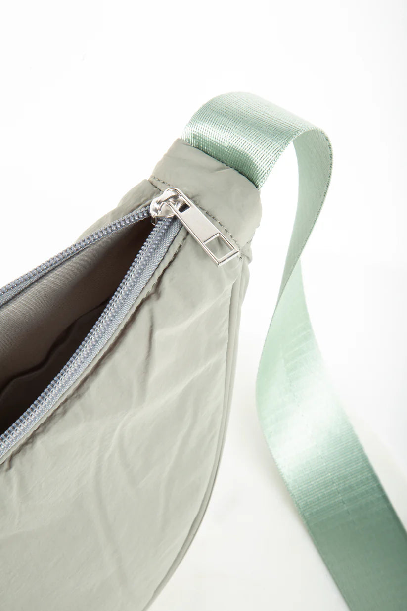 Lichtgroene schoudertas met ritssluiting en verstelbare schouderband.