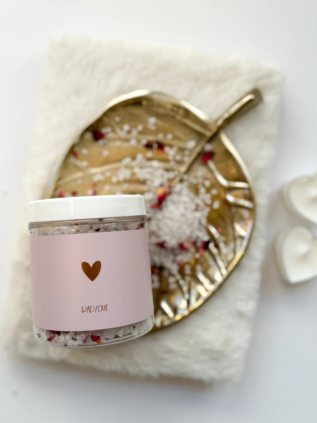 - Dode zeezout met rozenblaadjes