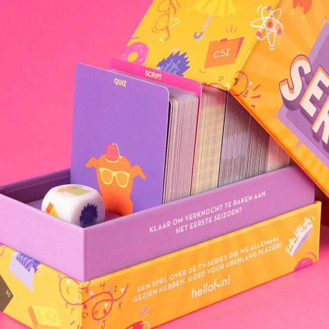 Al jouw favoriete series samen in één spel! Ben je klaar om alles te geven bij het neuriën van ''The Love Boat''? Ken jij alle series die over vriendengroepen gaan? Kruip jij het beste in de rol van Sheldon met zijn ''Knock, knock, knock Penny!''? Weet jij wie er op de Iron Throne belandt en hadden Ross en Rachel nou een break? Of je nou een echte seriefanaat bent of niet, met dit spel heb je altijd urenlang speelplezier met je vrienden en familie.