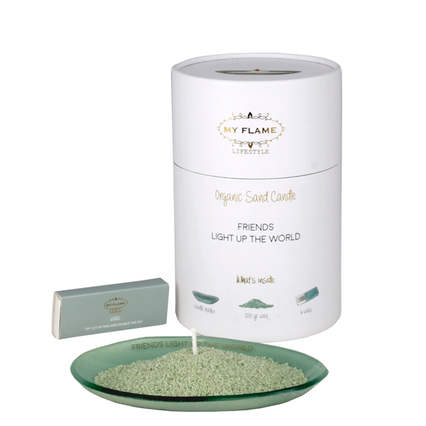 Deze giftbox bevat 200 gram wax – goed voor zo’n 12 keer gebruik. De stijlvolle groene schaal is voorzien met de tekst 'Friends light up the world' en past in elk interieur.