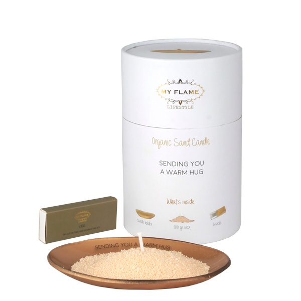 Je ontvangt het kaarsenzand in een luxe geschenkdoos, inclusief 6 lontjes in een handig lontdoosje. Tip: knip de lontjes in 3 stukjes voor de juiste lengte van de lont.