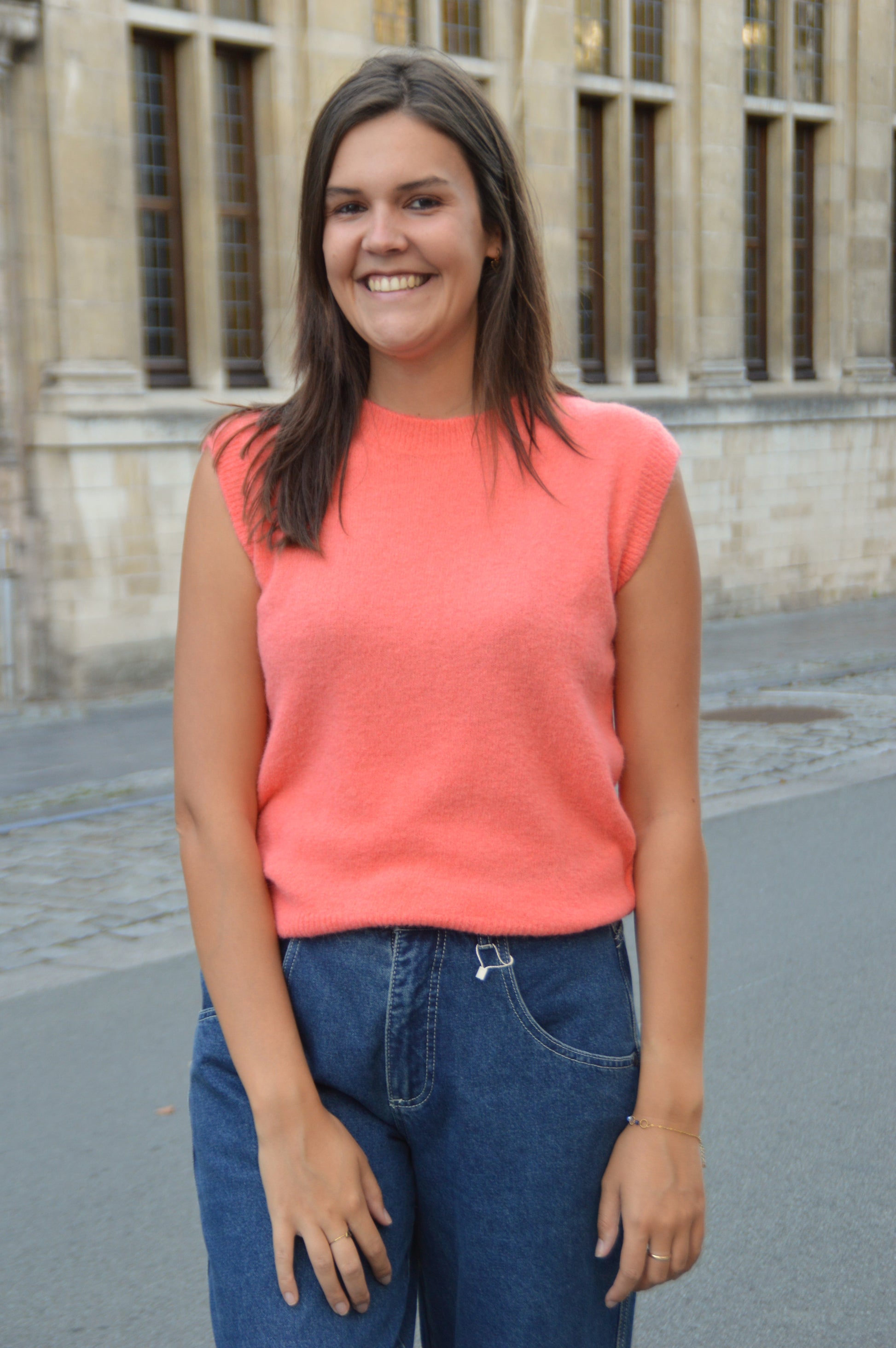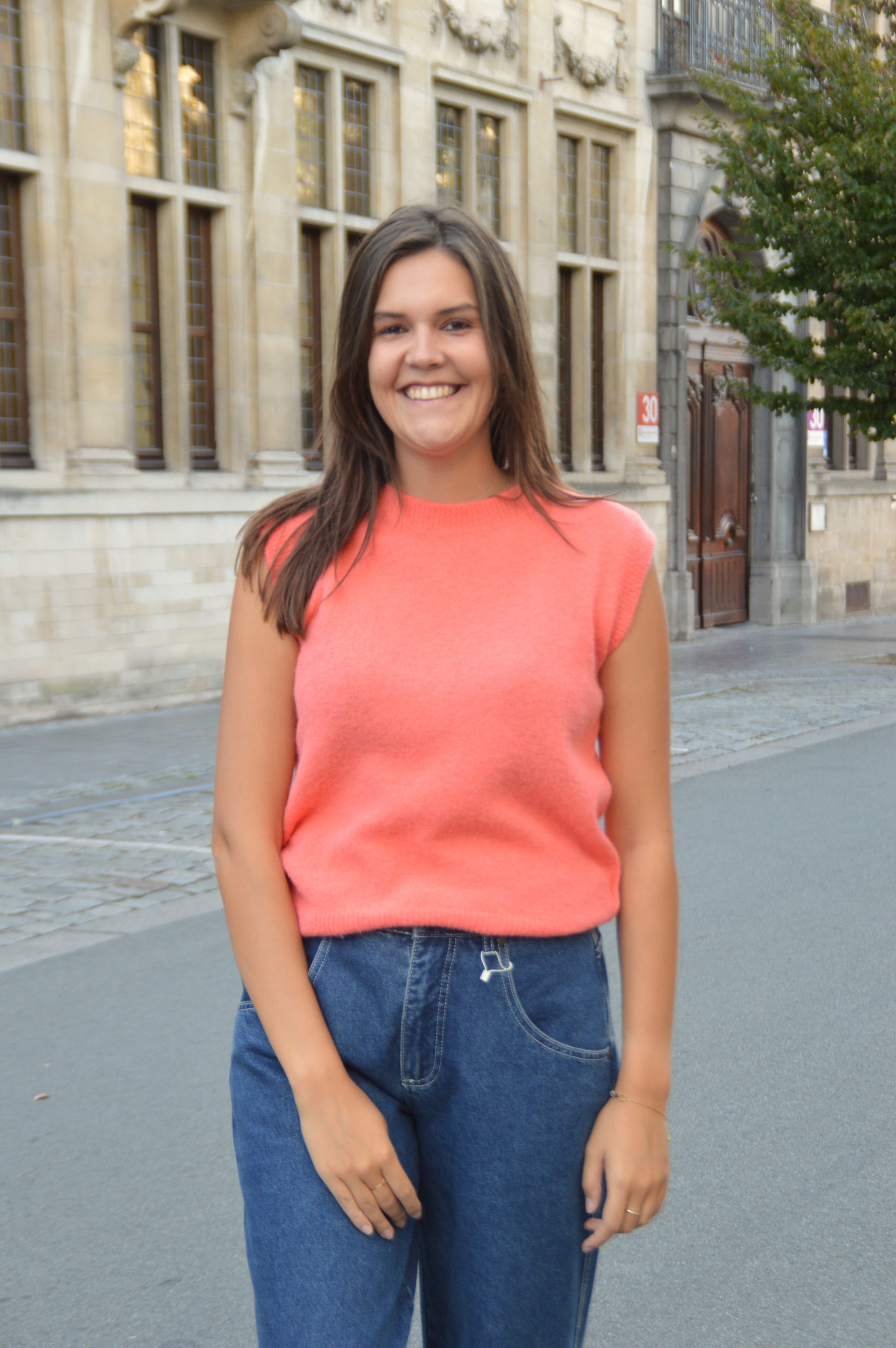 Koraalkleurige debardeur, one size. Super zacht, prikt niet.