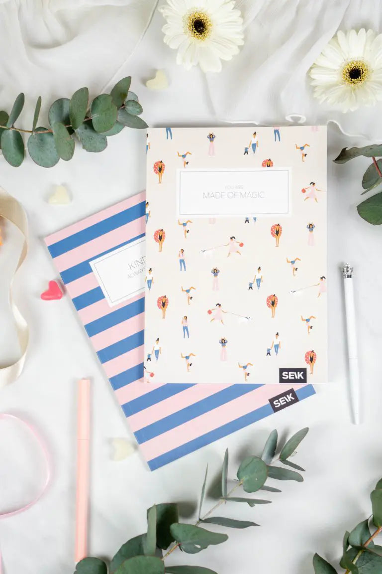 Set van 2 notitieboekjes. In de boekjes zijn er geen lijntjes of ruitjes, maar enkel stipjes. Zo kan je de schriftjes voor vanalles gebruiken: grafieken maken, teksten noteren of tekeningen maken.