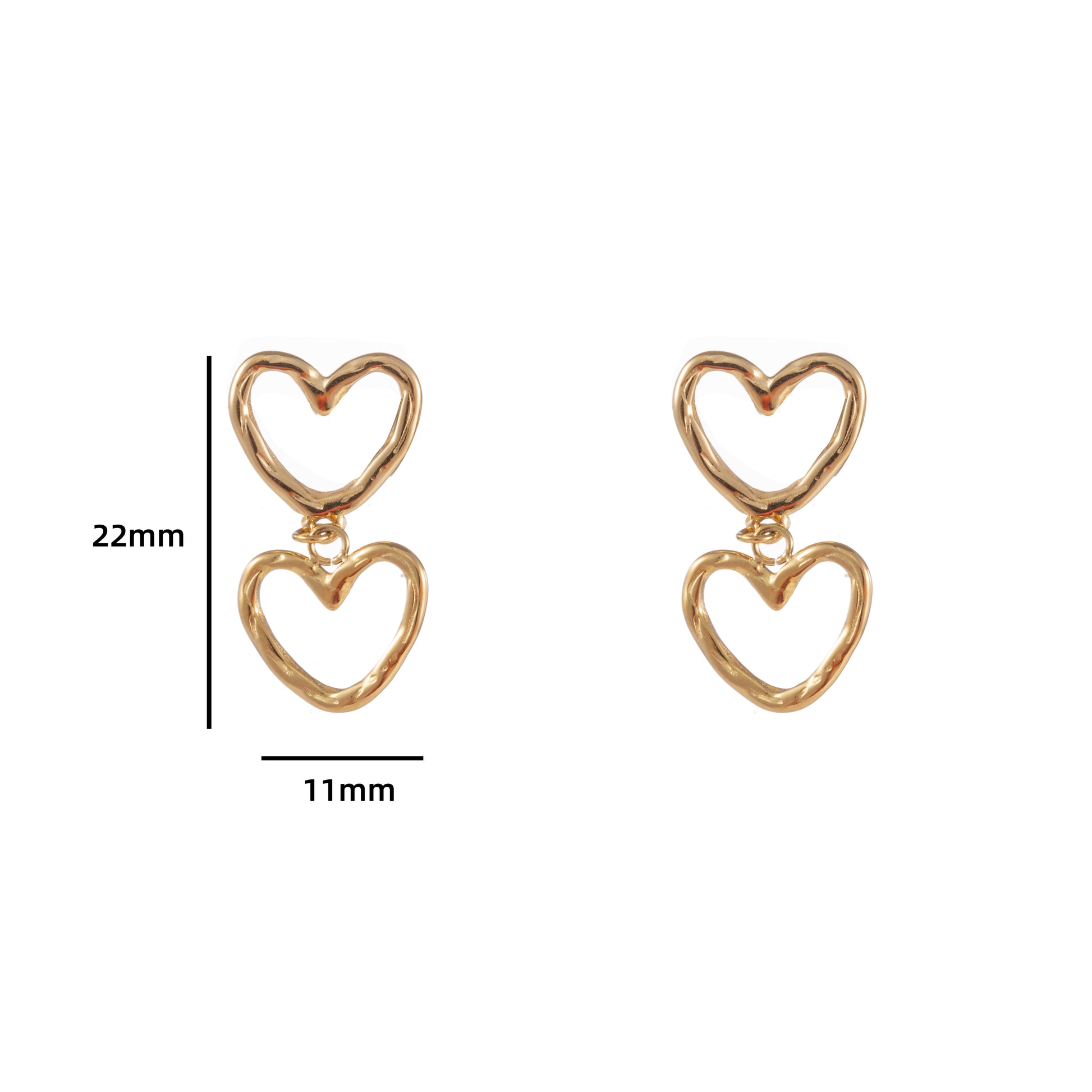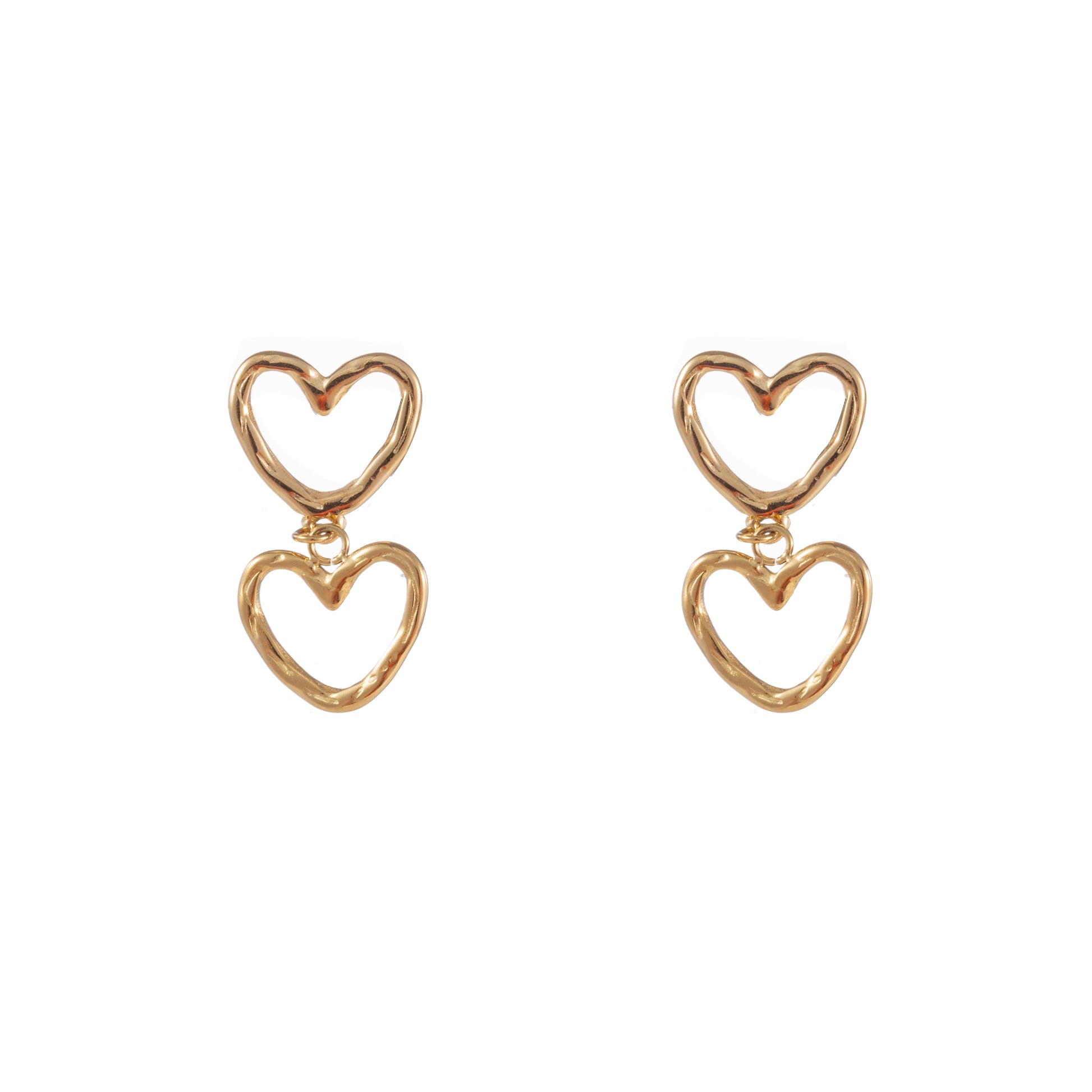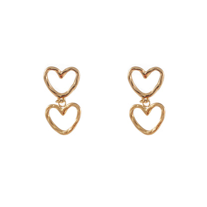 Oorbellen Double Dangling Hearts goud