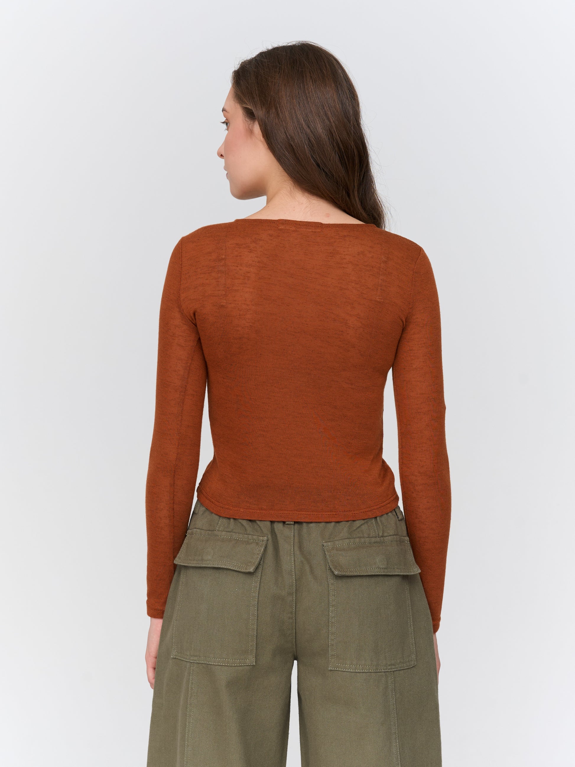 Roest-oranje truitje met lange mouwen.