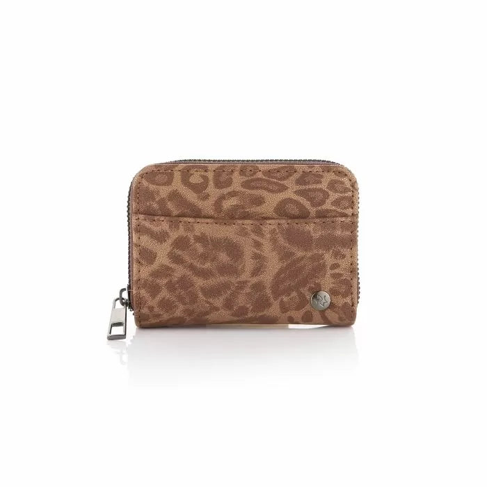 Kleine portemonee met dierenprint. De portemonnee heeft een rits en is in 3 vakjes verdeeld vanbinnen.