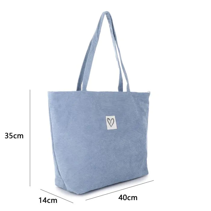 Leuke ribfluwelen tas met rits. In de tas zit een zijvakje.