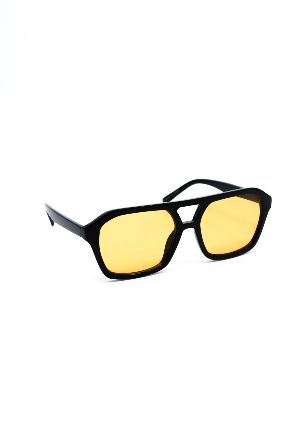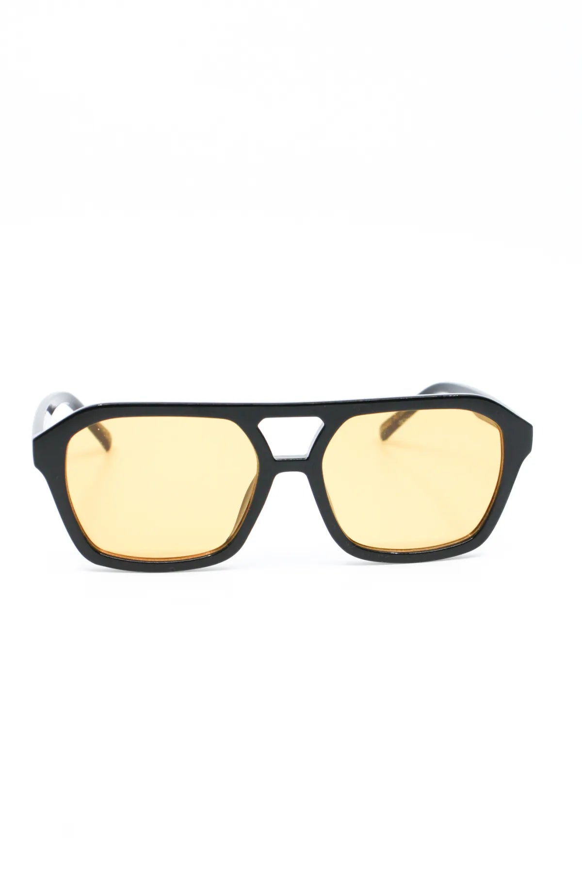 Deze hippe zonnebril maakt je outfit helemaal af! De zonnebril heeft geel-oranje glazen.